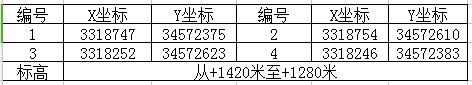 天全县华宇石材有限公司拥有自己的矿山,矿区位于天全县城195度方向,距离厂区13公里,矿区有约4公里林区公路至鱼泉乡道,与国道318相通,矿区面积0.119平方公里,开采标高(**1985高程基准)+1420米至+1280米,由4个直角坐标拐点圈闭而成,各拐点坐标见表1